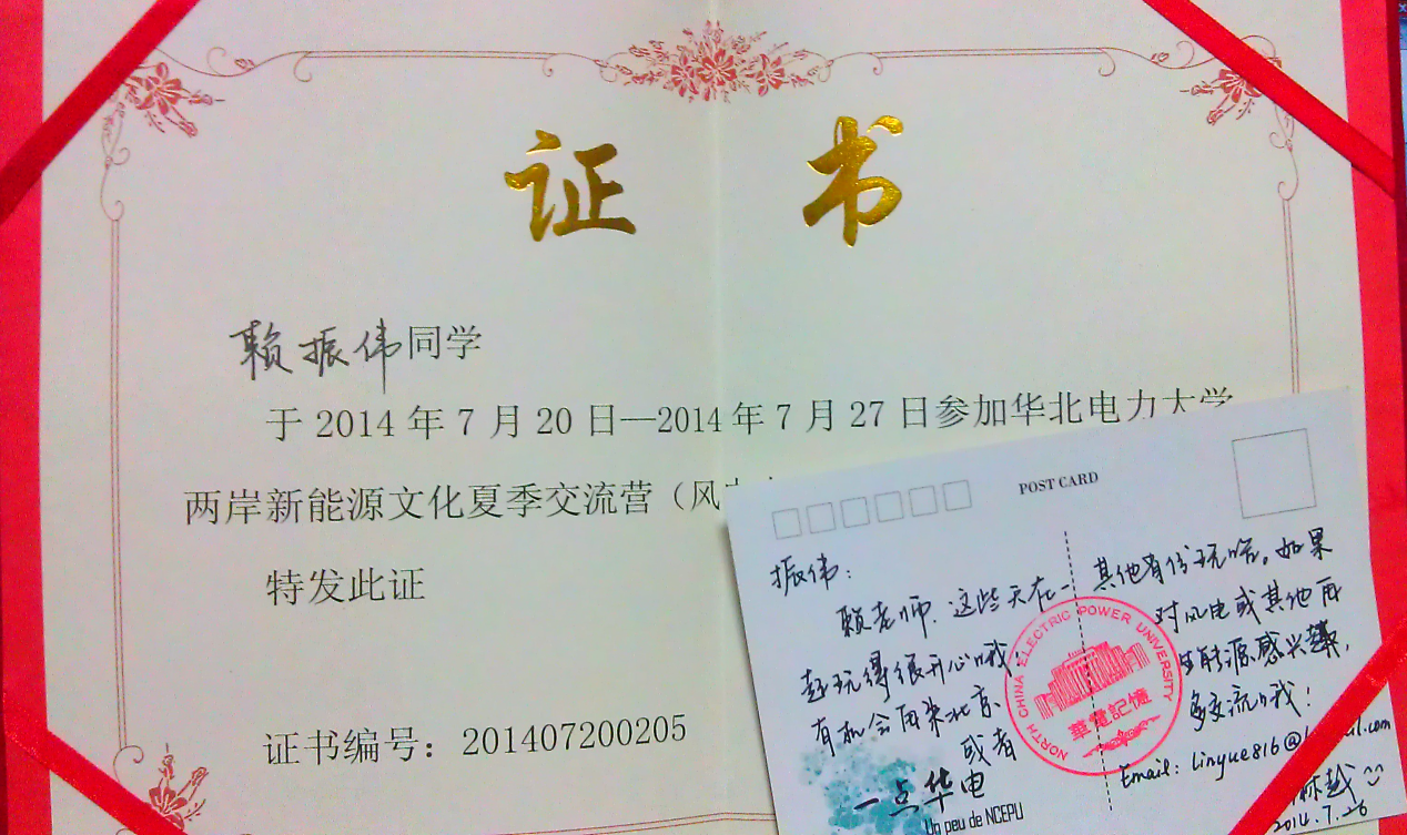 這次的行程不管是知識的增長或參觀古蹟都非常的棒,就由風力發電說起,其實在台灣的風力發電機真的不多見,頂多在沿海有一些而已,很難近距離地觀看,且沒有機會讓專業的人員替我們介紹這部分,也對風力發電相當的陌生,但這次去了北京後才發現大陸是積極的在發展這方面的能源,不但分期的完成風力建設,且讓我們到實際操作的地方了解並與請專業人士為我們解說,這是一個很特別的體驗,雖然我的專業知識還沒有很多,不是很了解他所說的,但卻讓我對風能這個綠色資源有更多的了解,很想看到台灣也能豎立那一座座白色的塔,解決台灣能源不足的問題,但在與韓老師和田老師坐下來討論後,我發現發展風力發電並不像我以前想得簡單,不是買好機組組起來就可行了,而是要克服重重考驗才能順利地運轉,在台灣這麼多颱風下是一個重大的考驗。