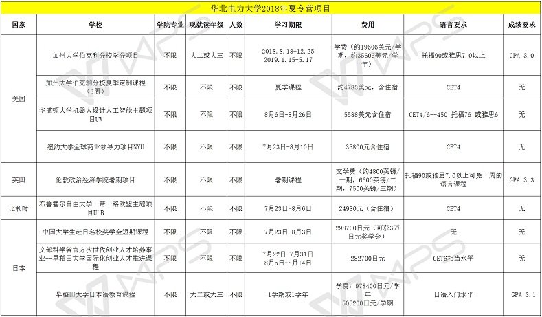 申请方式:将姓名、班级、电话、平时成绩、语言成绩(若有)发送至zijian@ncepu.edu.cn(国际合作处 赵老师)